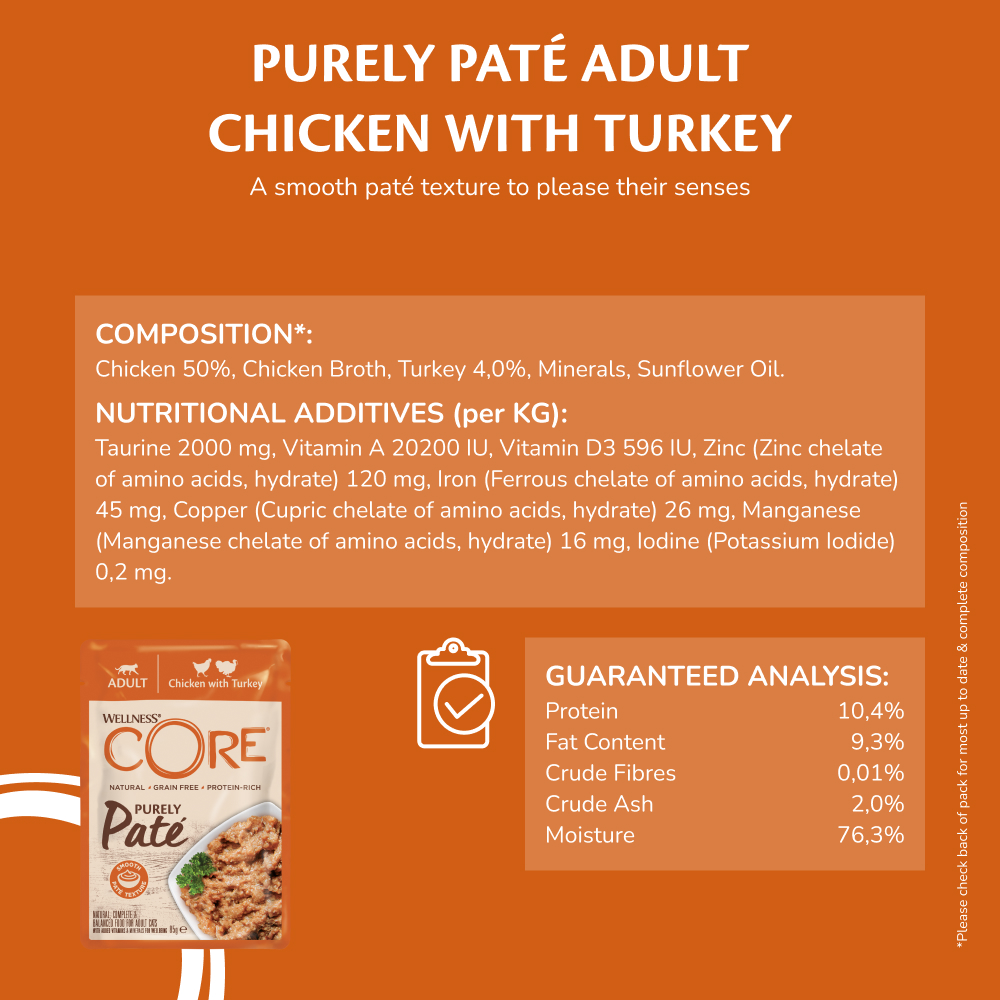 Wellness Core Purely Paté Adult, Pollo con pavo - 85G