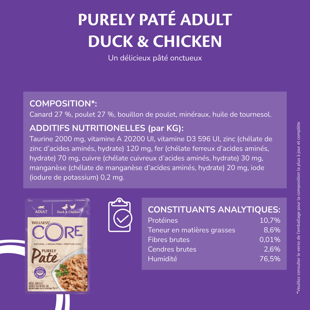 Wellness Core Purely Paté Adult, Poulet & Canard - 85G