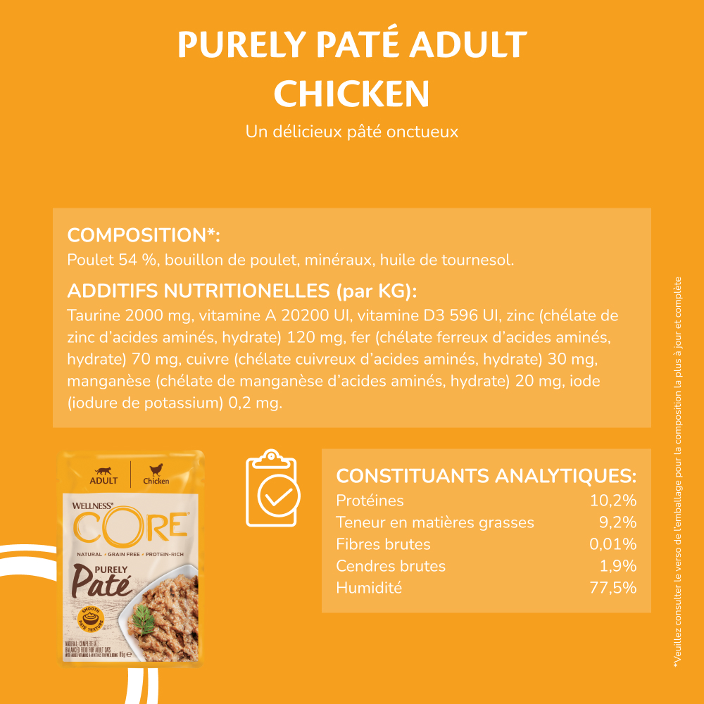 Wellness Core Purely Paté Adult, Poulet - 85G