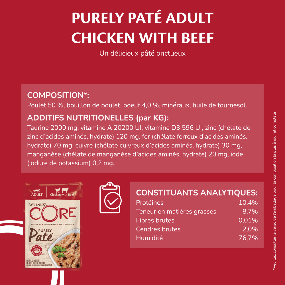 Wellness Core Purely Paté Adult, Poulet avec Boeuf - 85G