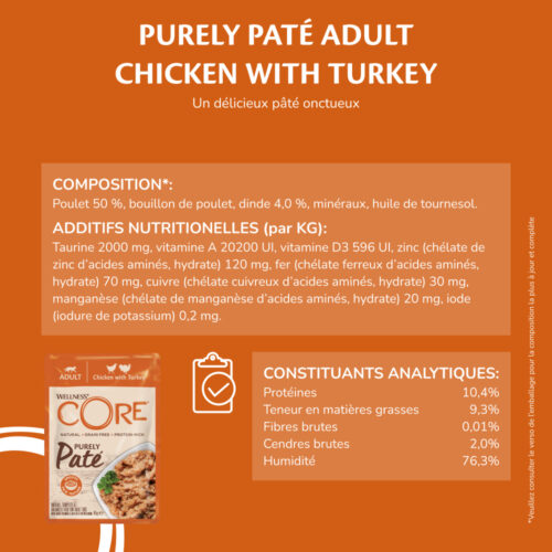 Wellness Core Purely Paté Adult, Poulet avec dinde - 85G