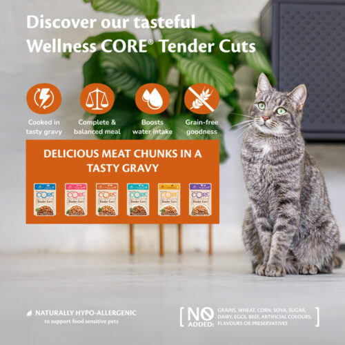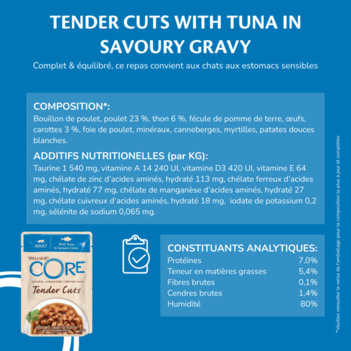 Wellness CORE Tender Cuts au thon est un aliment complet pour chats adultes.