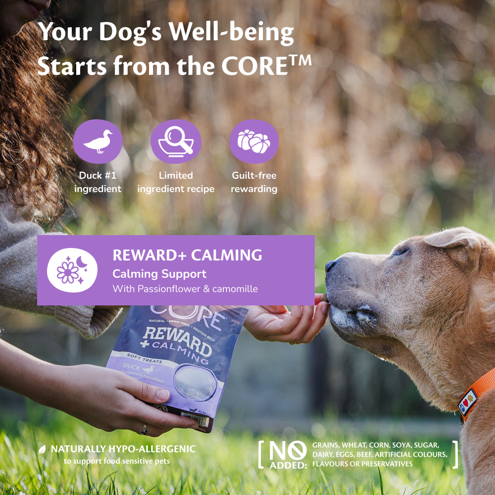 Elk van hen bevat een specifiek gezondheidsvoordeel! De Reward+ Calming is een snack met een zachte textuur en bevat passiebloem & kamille dat stress en angst helpt te verminderen en een kalmer gedrag te bevorderen.