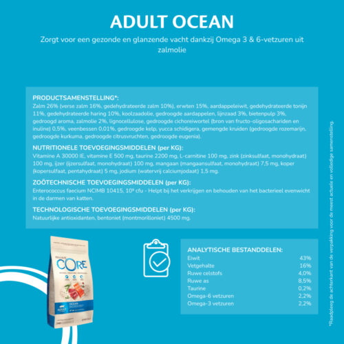 Wellness CORE Adult Ocean is bovendien ook ontworpen om haarbalvorming te verminderen vanwege het hoge gehalte aan vezels.