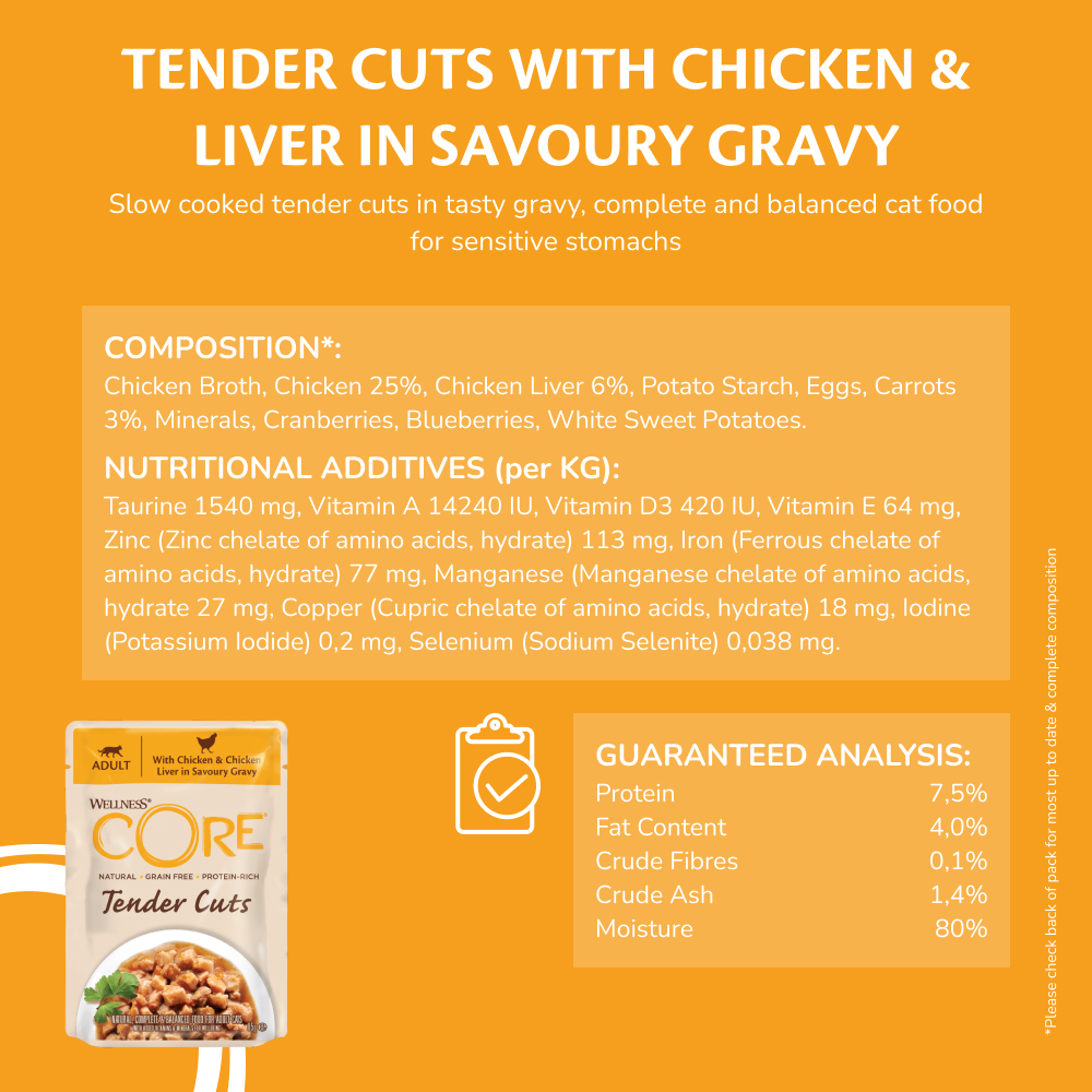 Wellness CORE Tender Cuts with Chicken & Chicken Liver in Savoury Gravy - 85g